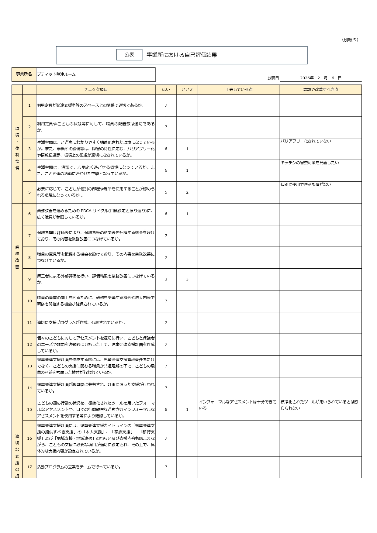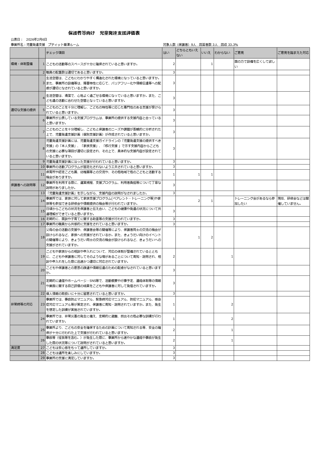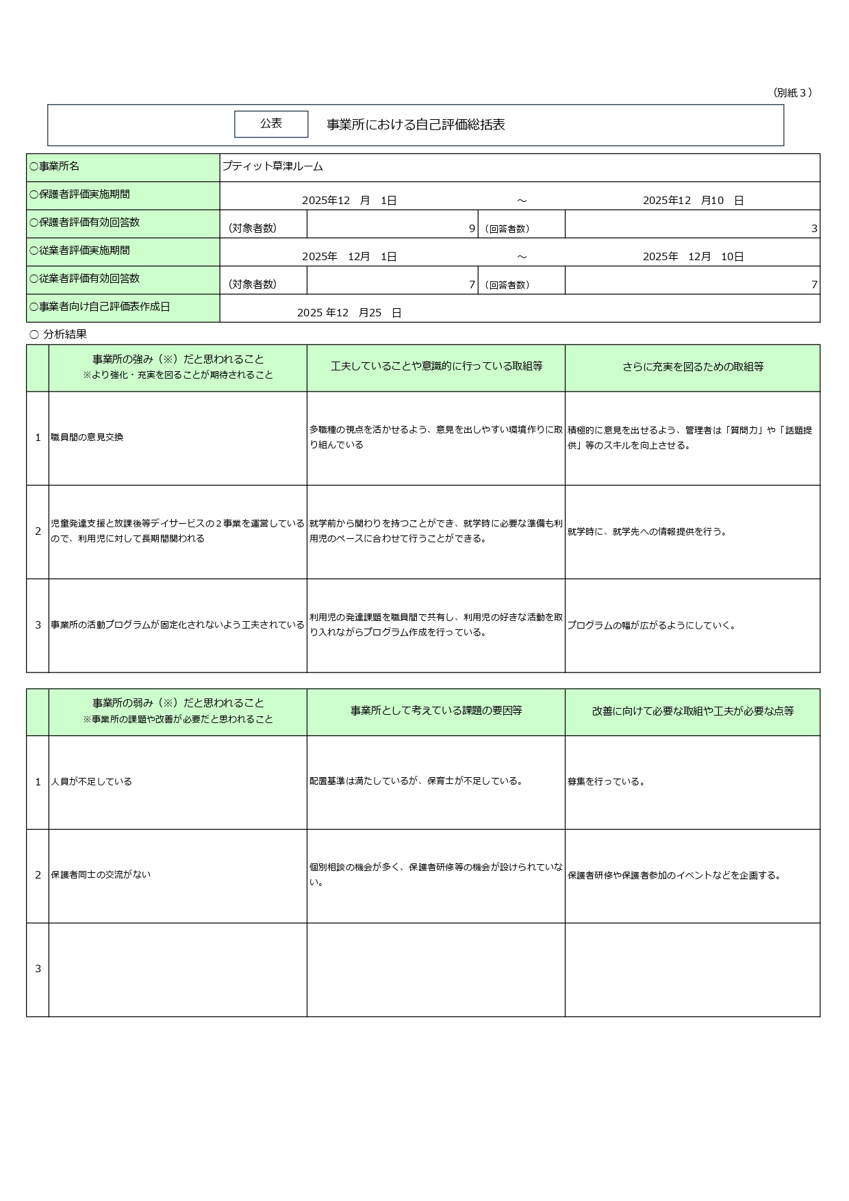 令和7年度自己評価アンケート 草津ルーム 児発