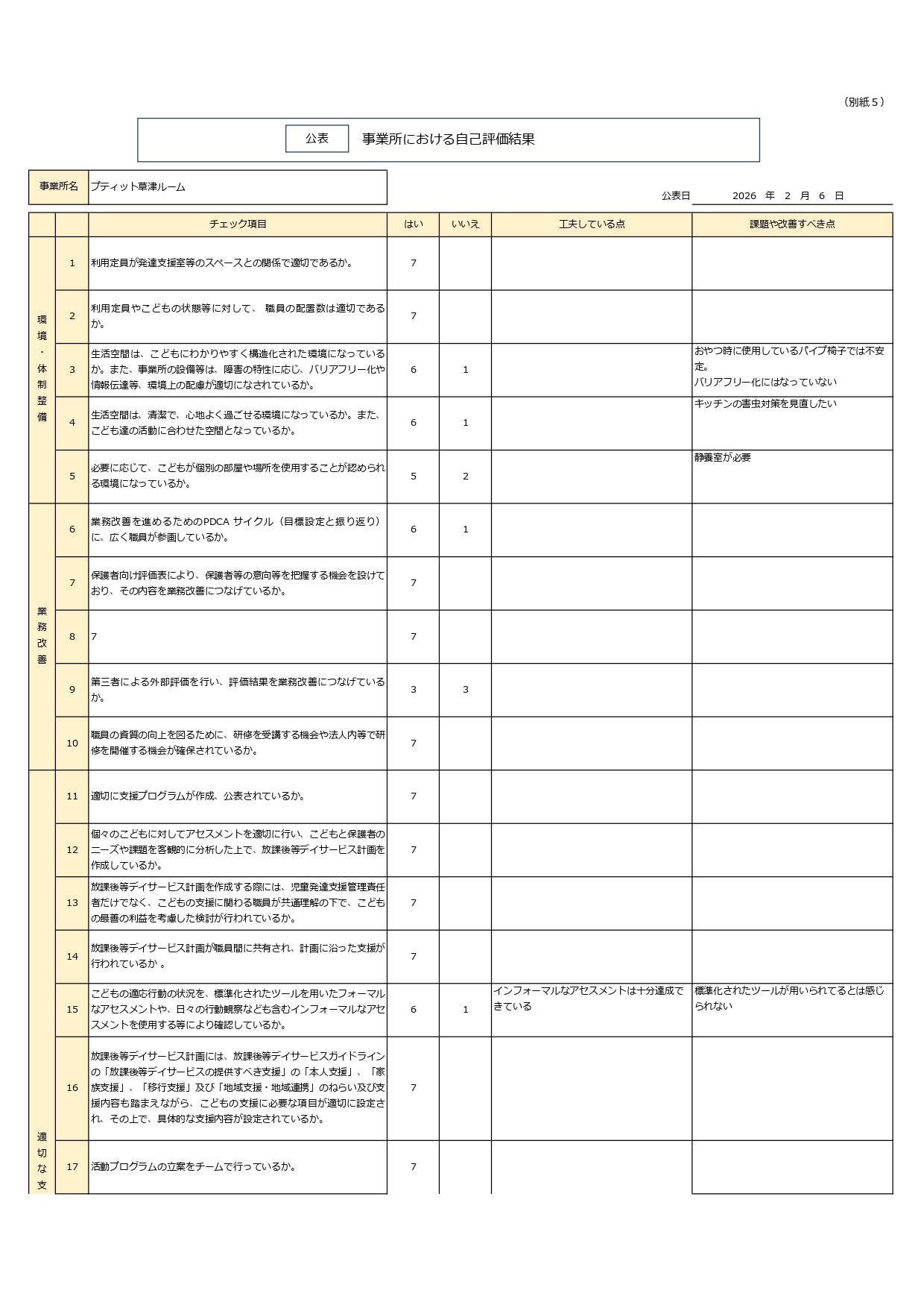 令和7年度自己評価アンケート 草津ルーム 放デイ