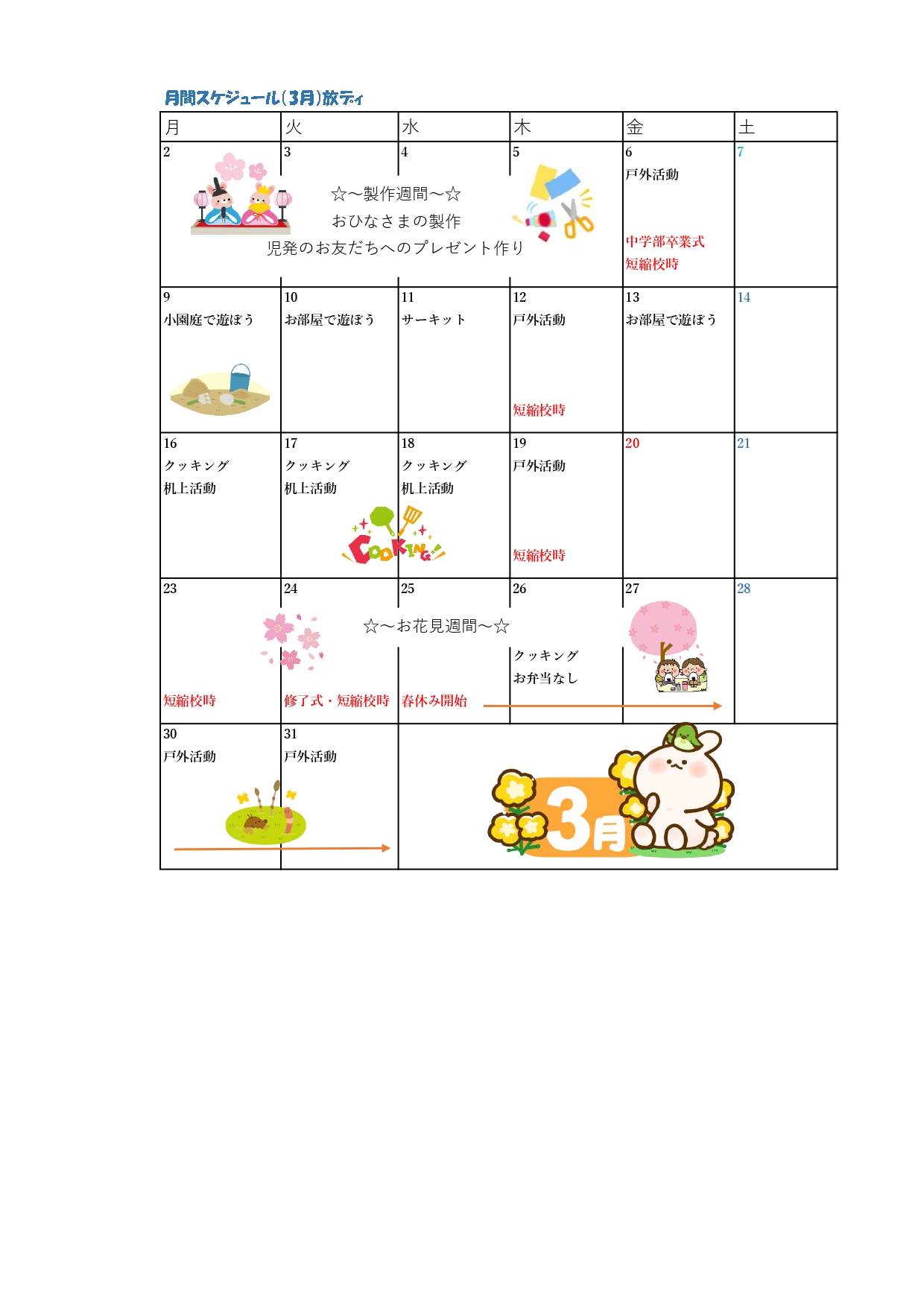 いよいよ今年度も最後の1ヶ月となりました。少しずつ暖かくなり、子どもたちが外遊びで元気に駆け回る姿に春の訪れを感じる今日この頃です。